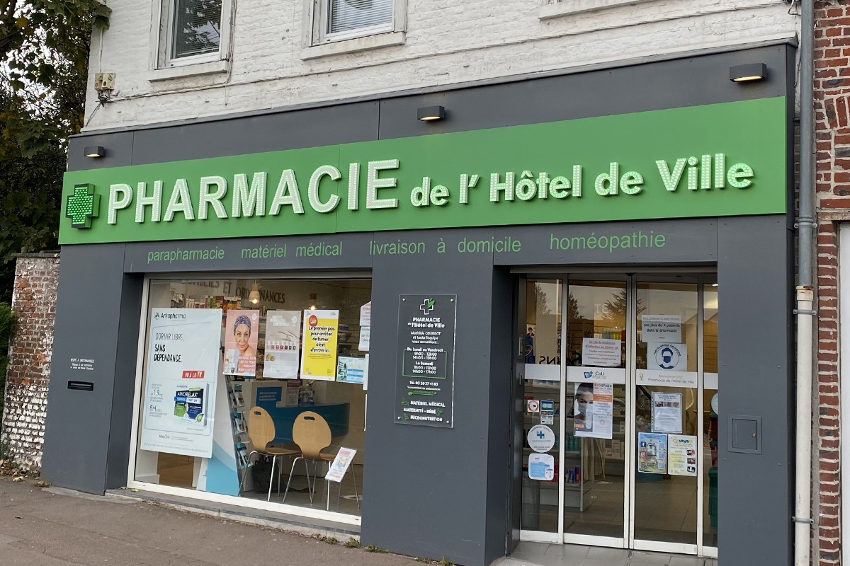 La Pharmacie de l’Hôtel de Ville vous accueille du lundi au samedi à Linselles, à quelques minutes de Roncq.